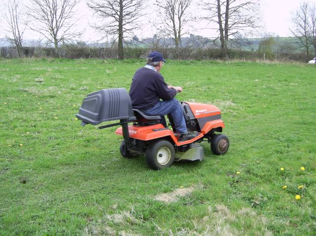 The mower arrived Sunday 3rd April; here Ted zooms past me doing at least 2mph!